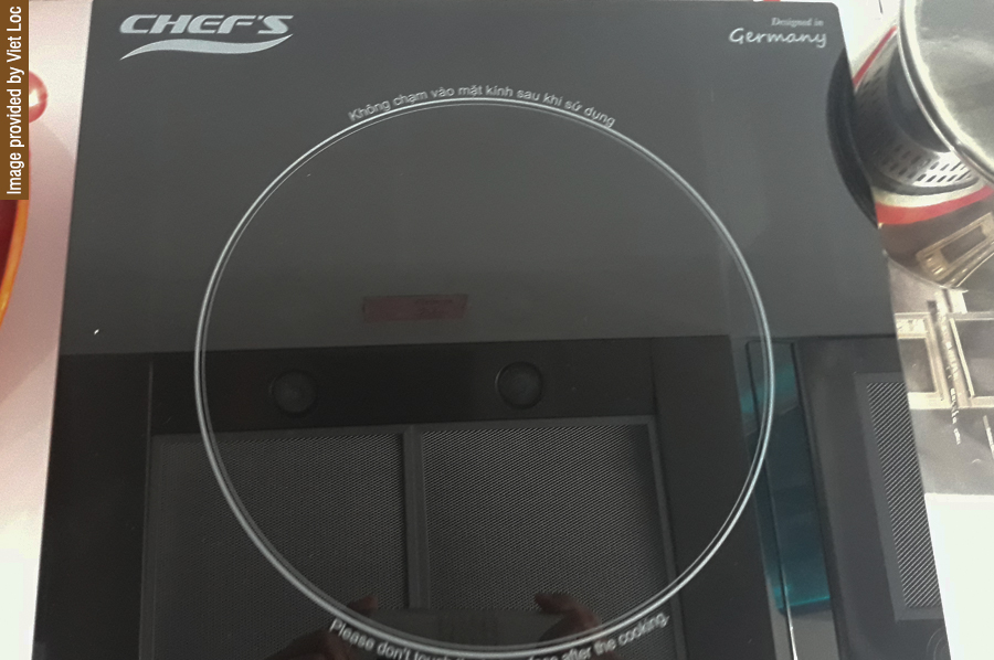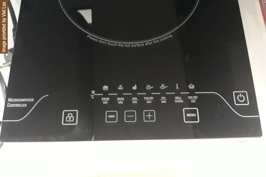 Khu vực điều khiển bếp khá dễ nhìn với các phím cảm ứng có chú thích bằng tiếng việt đặt bên dưới vùng nấu.